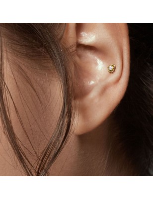 Piercing de type labret, pour la lèvre et l'oreille (cartilage, hélix, tragus), en acier chirurgical 316L, plaqué de couleur dorée, représentant des petites billes entourant une pierre en cristal blanc