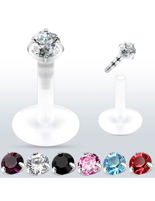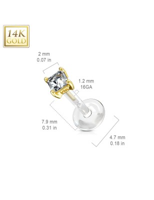 Ce magnifique piercing pour la lèvre combine le confort de la tige en bioplast (sans nickel, pas d'irritation ou d'allergie possible) avec un embout en véritable Or 14K (qui se fixe directement sur la tige par pression).