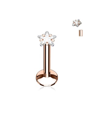 Piercing de type labret, pour la lèvre et l'oreille (cartilage, hélix, tragus), en acier chirurgical 316L, plaqué de couleur rosée et serti d'une pierre en forme d'étoile en zirconium couleur blanche.