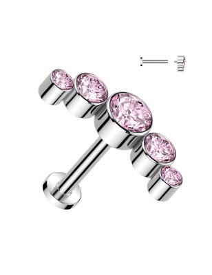 Piercing labret en titane, avec un embout incurvé serti de strass.