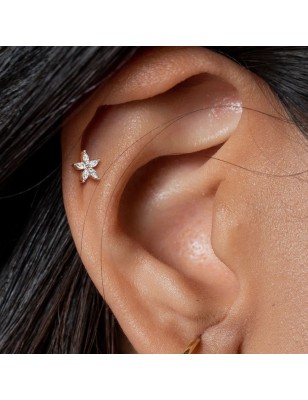 Piercing labret, pour l'oreille, représentant une fleur à 5 pétales.
