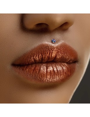 Piercing de type labret, pour l'oreille et la lèvre, en acier chirurgical doré serti d'une pierre effet vitrail.