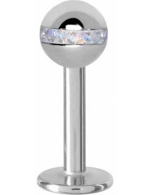 Piercing de type labret, pour la lèvre, en acier chirurgical 316L, avec une boule de 4 mm sertie de multiples cristaux de Swarovski.