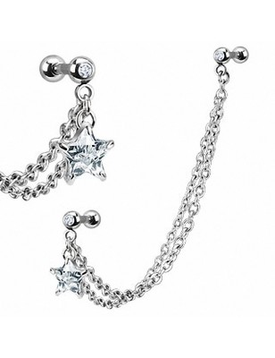 Piercing de type labret, pour la lèvre et le tragus, en acier chirurgical 316L, avec un embout représentant une étoile brillante sertie de petites pierres en zirconium de couleur blanche.