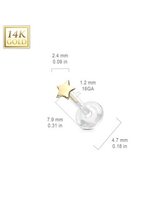 Piercing de type labret, pour la lèvre et l'oreille, en bioplast, avec un embout en forme d'étoile en véritable or jaune 14 carats.