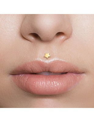 Piercing labret en bioplast, avec un embout en véritable Or 14 carats, en forme d'étoile.