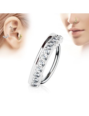 Piercing de type labret, pour la lèvre, l'hélix et le tragus, avec une tige en bioflex et un embout (qui se clipse à l'intérieur de la tige) serti d'une pierre en forme d'étoile en zirconium blanc.