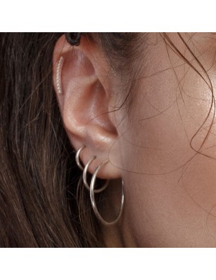 Piercing de type labret, pour la lèvre et l'oreille, en acier chirurgical 316L, plaqué or rose, avec un embout courbé représentant une ligne de strass en zirconium.