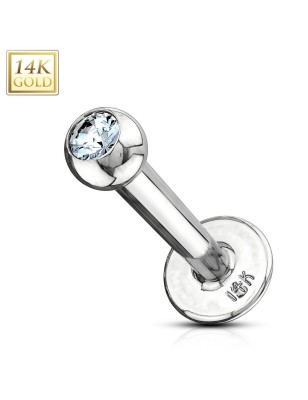 Piercing pour labret en titane G23, sertie d'une pierre en zircon.