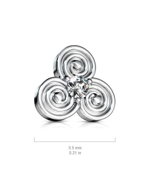 Embout de piercing dermal en acier chirurgical 316L, représentant un motif de cercles tribales.