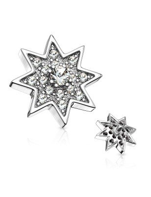 Embout de piercing dermal en acier chirurgical 316L, plaqué or 14K, représentant une fleur sertie de 8 pierres en zirconium blanc formant les pétales.
