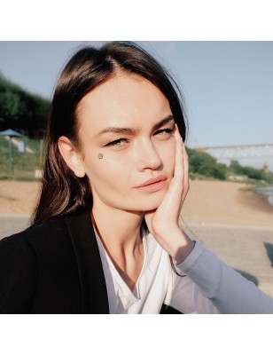 Piercing micro dermal en véritable or jaune 14K, représentant une fleur sertie de zircon.