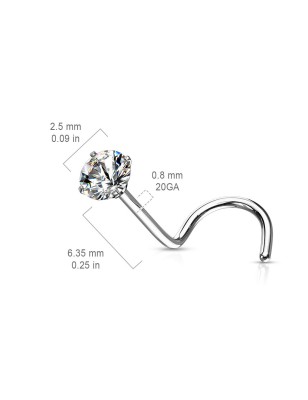 Piercing pour le nez, avec une tige courbée, serti d'un zirconium de forme ronde.