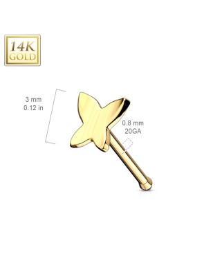 Piercing pour le nez avec une tige droite, en véritable Or 14K.