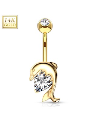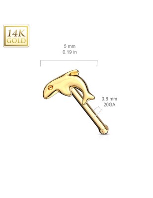 Piercing pour le nez en véritable Or 14 carats, représentant un dauphin.