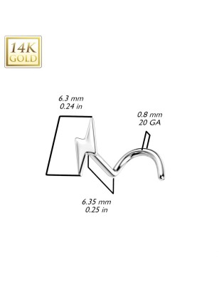 Piercing pour le nez en véritable Or Blanc 14 carats, représentant un éclair.