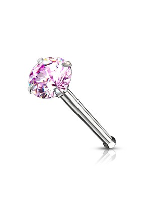 Piercing pour le nez en acier chirurgical 316L, avec une tige droite, serti d'une pierre en zirconium blanc.