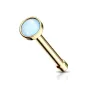 Piercing pour le nez en acier chirurgical doré, avec une tige droite, serti d'une pierre en époxy à effet lumineux, de couleur bleue.