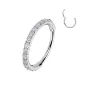 Piercing anneau clipsable, pour le nez, en acier chirurgical 316L. De qualité haute précision, cet anneau est pavé sur sa face extérieure de multiples petites pierres en zirconium. Ce modèle est disponible en 4 diamètre intérieur.