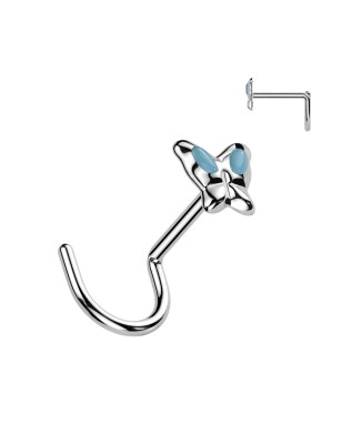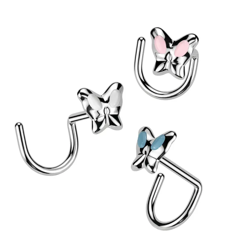 Piercing pour le nez en argent 925/1000, avec une tige courbée, représentant un papillon mesurant environ 3 mm.