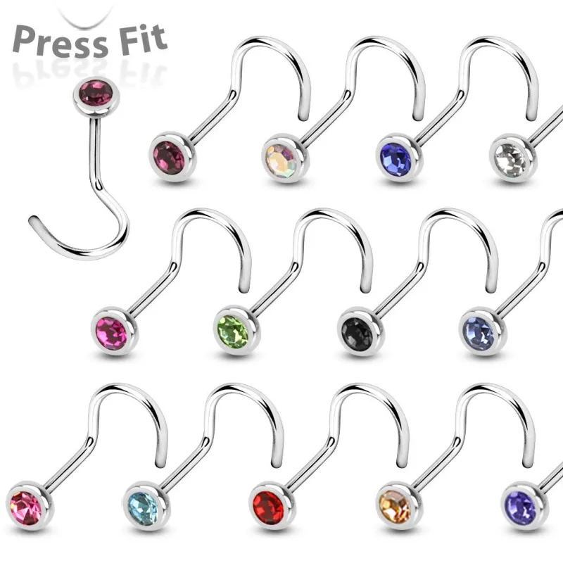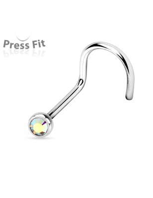Piercing pour le nez en acier chirurgical, serti d'une pierre Cubic Zirconium de 2 mm.