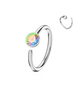 Piercing pour le nez, en acier chirurgical 316L, en forme d'anneau, serti d'une petite pierre en zircon.