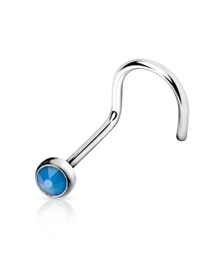 Piercing pour le nez en acier chirurgical 316L, avec une tige en tire-bouchon, sertie d'une pierre en opale.