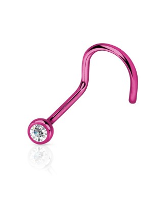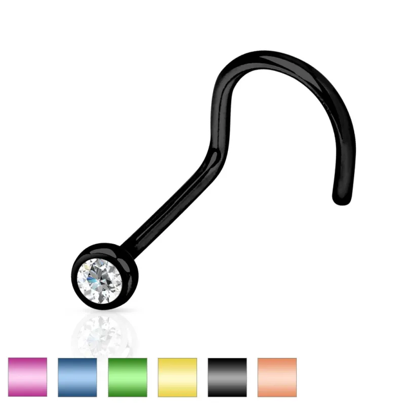 Piercing pour le nez en titane anodisé, avec une tige en forme de tire-bouchon, sertie d'un strass.
