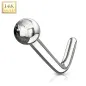 Piercing pour le nez en or blanc 14 carats, avec une boule et une tige en L.
