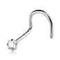 Piercing pour le nez, avec une tige en tire-bouchon, en véritable or blanc 14 carats, serti d'une pierre en zirconium de forme carrée.
