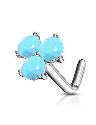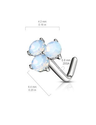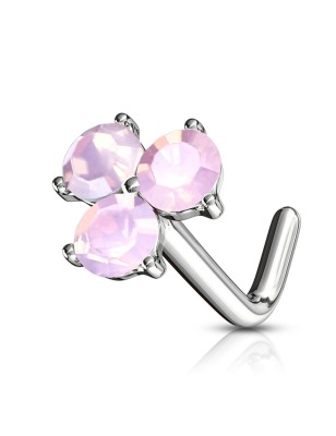Piercing pour le nez en acier chirurgical 316L, avec une tige en L, serti de trois cristaux de couleur blanche, formant un triangle.