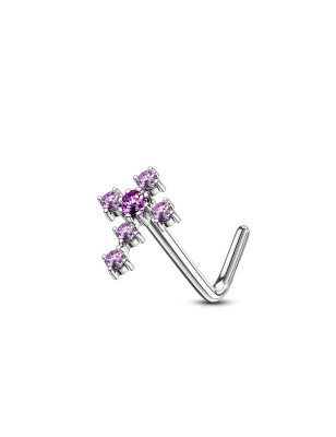 Piercing pour le nez en acier chirurgical, avec une tige en L, serti d'une pierre en forme de coeur.