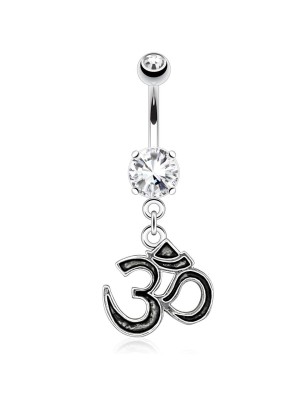 Piercing de type anneau, en acier chirurgical 316L, de couleur dorée pavé de strass blancs.