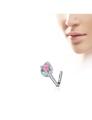 Piercing pour le nez en acier chirurgical, avec une tige en L, en forme de larme sertie d'une opale.