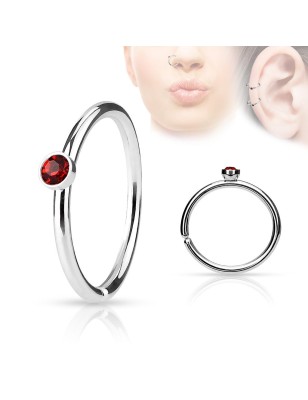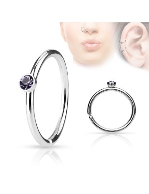 Piercing nez de type anneau en acier chirurgical, serti d'un petit cristal.