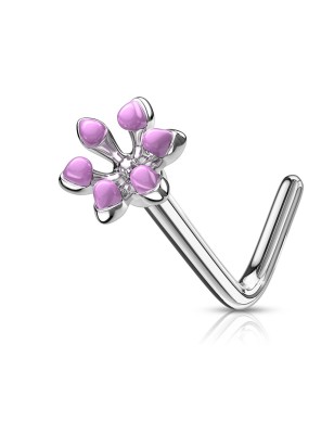 Piercing pour le nez en acier chirurgical, avec une tige en L, représentant une fleur.