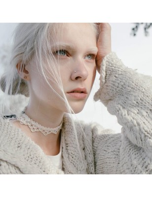 Il est sertie d'une pierre en zirconium de couleur blanche, en forme de triangle, et mesurant 3,5 mm.