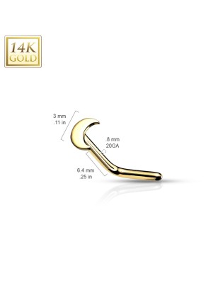 Piercing pour le nez en or jaune 14 carats, tige en L, représentant une lune.