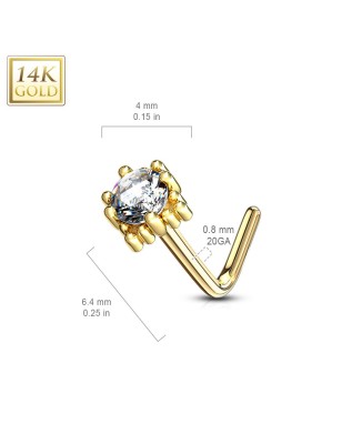 Piercing pour le nez en or jaune 14 carats, tige en L, serti d'un gemme.
