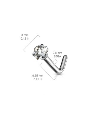 Piercing pour le nez avec une tige en L, de très haute qualité, réalisé dans un excellent titane de grade G23, serti d'une pierre en zirconium blanc, en forme de coeur.