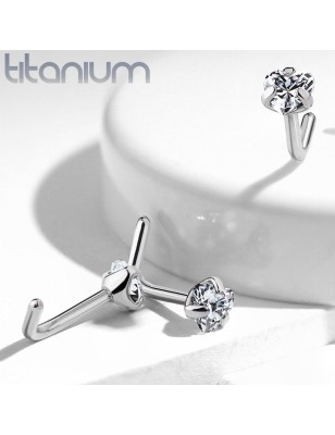 Piercing pour le nez en titane G23, serti d'une pierre en zirconium en coeur.