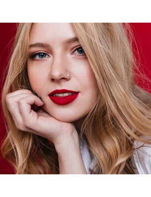Piercing de type anneau, pour le nez, en laiton plaqué or rose 14 carats, représentant une fleur sertie de cinq pierres en zirconium blanc.