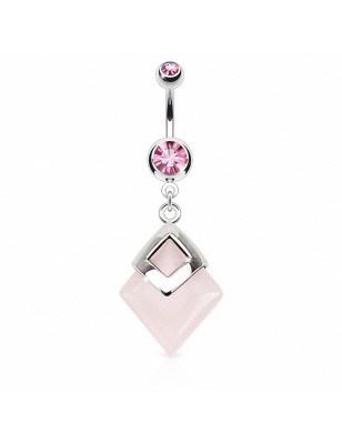 Piercing de type anneau, pour le nez, en acier chirurgical, représentant une barre oblique dorée, et serti de pierres en zirconium blanc.