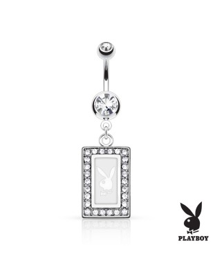 Piercing pour le nombril, en acier chirurgical 316L, serti de deux pierres en zircon, avec un pendentif en forme de cadre rectangulaire représentant le célèbre lapin Playboy.