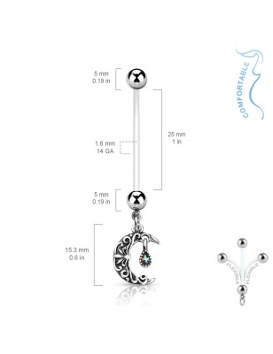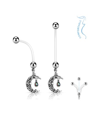 Piercing de grossesse pour le nombril, en bioflex, représentant une lune.