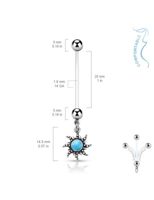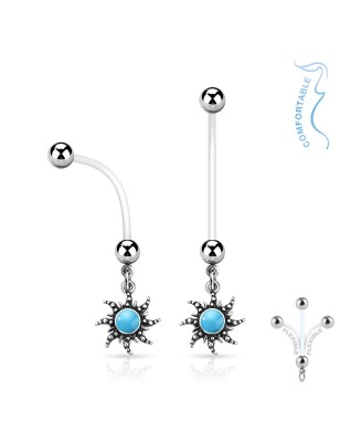 Piercing de grossesse pour le nombril, en bioflex, représentant un soleil.