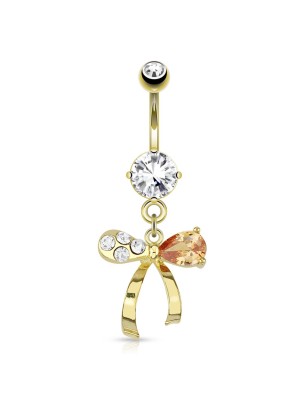 Piercing pour nombril inversé, représentant un coeur, serti de strass.