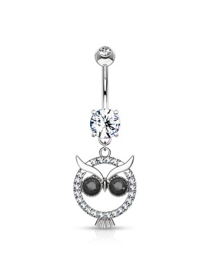 Piercing pour le nombril en acier chirurgical avec un pendentif représentant un hibou.