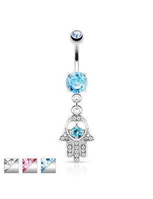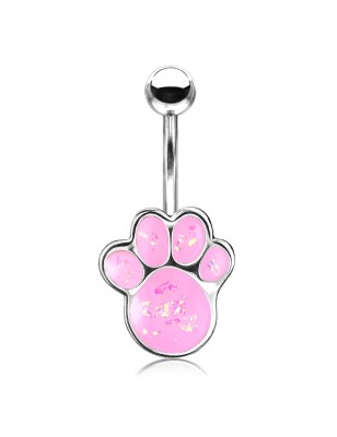 Piercing de type banane inversée, pour le nombril, en acier chirurgical 316L, serti de pierres marquise en zirconium rose représentant une fleur.