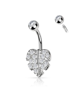 Piercing de type banane, pour le nombril, en acier chirurgical 316L, représentant une étoile entourée de petits cristaux de couleur blanche.